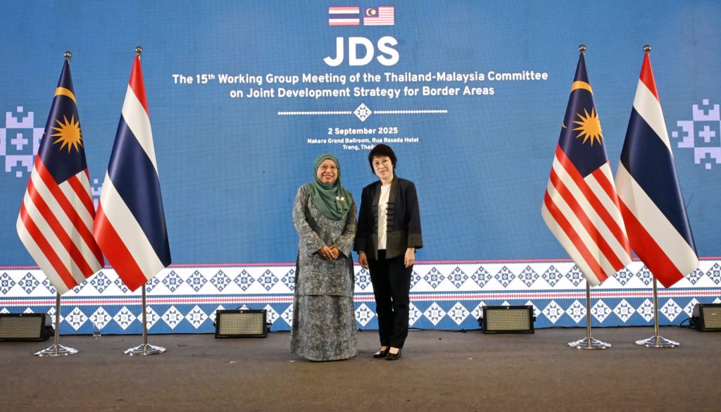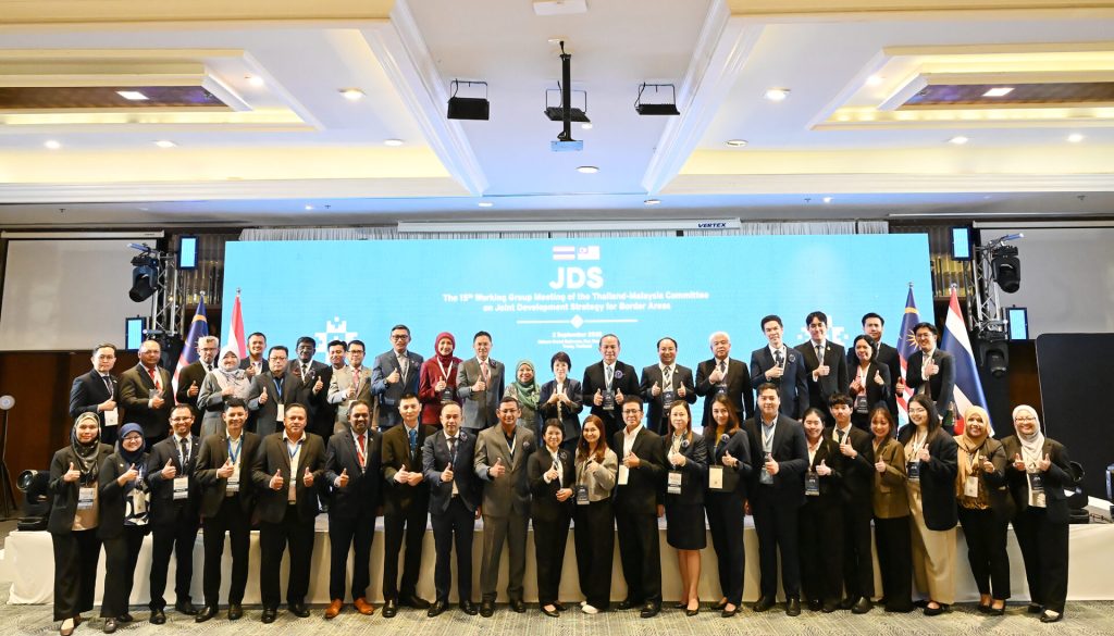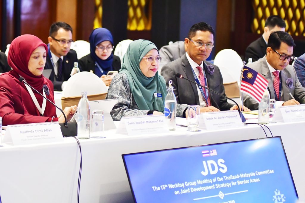 เมื่อวันที่ 2 กันยายน 2568 ประเทศไทยเป็นเจ้าภาพการประชุมระดับคณะทำงานคณะกรรมการว่าด้วยยุทธศาสตร์การพัฒนาร่วมสำหรับพื้นที่ชายแดน ครั้งที่ 15 ระหว่างไทยกับมาเลเซีย (The 15th Working Group Meeting of the Thailand-Malaysia Committee on Joint Development Strategy for Border Areas: JDS) ซึ่งสำนักงานสภาพัฒนาการเศรษฐกิจและสังคมแห่งชาติ (สศช.) ในฐานะผู้รับผิดชอบหลักได้จัดการประชุมดังกล่าวขึ้น ณ โรงแรมเรือรัษฎา จังหวัดตรัง โดยมีนางสาวศศิธร พลัตถเดช รองเลขาธิการ สศช. เป็นประธาน และ ดาตุก ดร. ซูนิกา บินตี มูฮัมหมัด รองเลขาธิการกระทรวงการเศรษฐกิจมาเลเซียเป็นประธานร่วม และมีผู้แทนหน่วยงานภาครัฐของไทยและมาเลเซีย เข้าร่วมการประชุมฯ
