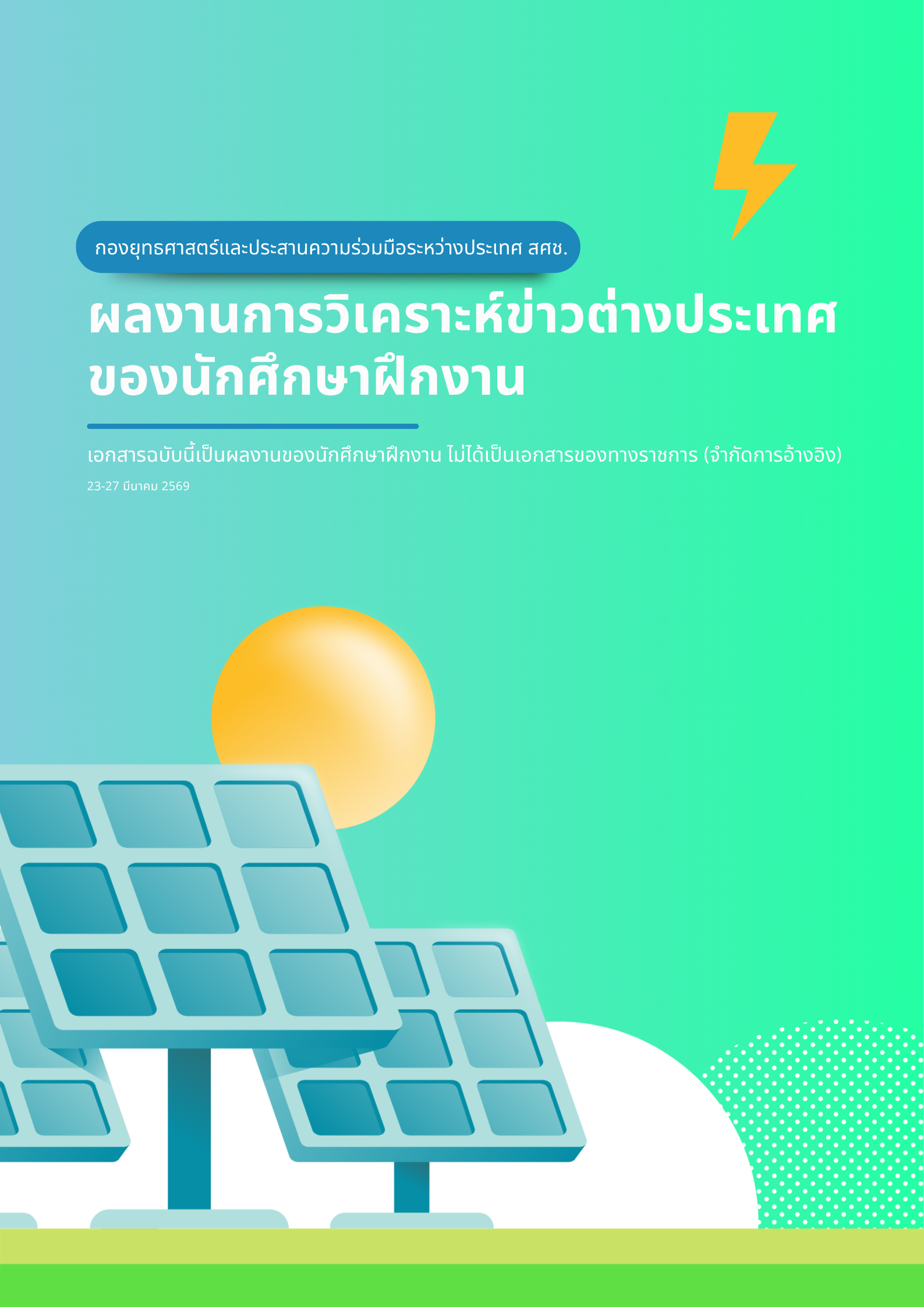 (9) ผลงานวิเคราะห์ข่าวต่างประเทศของนศ.ฝึกงาน ประจำสัปดาห์ 20 – 27 มี.ค. 69